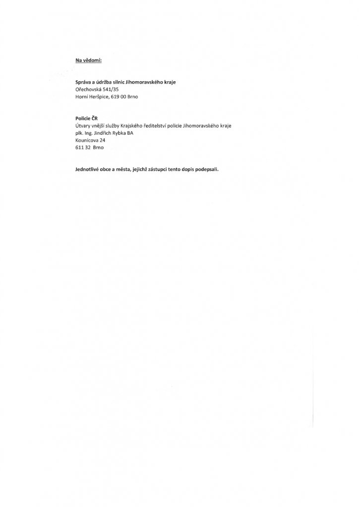 Současně přiložen také záznam z jednání na JMK, na kterém došlo ze strany Policie ČR k připuštění změny názoru na řešení dopravy na této komunikaci.