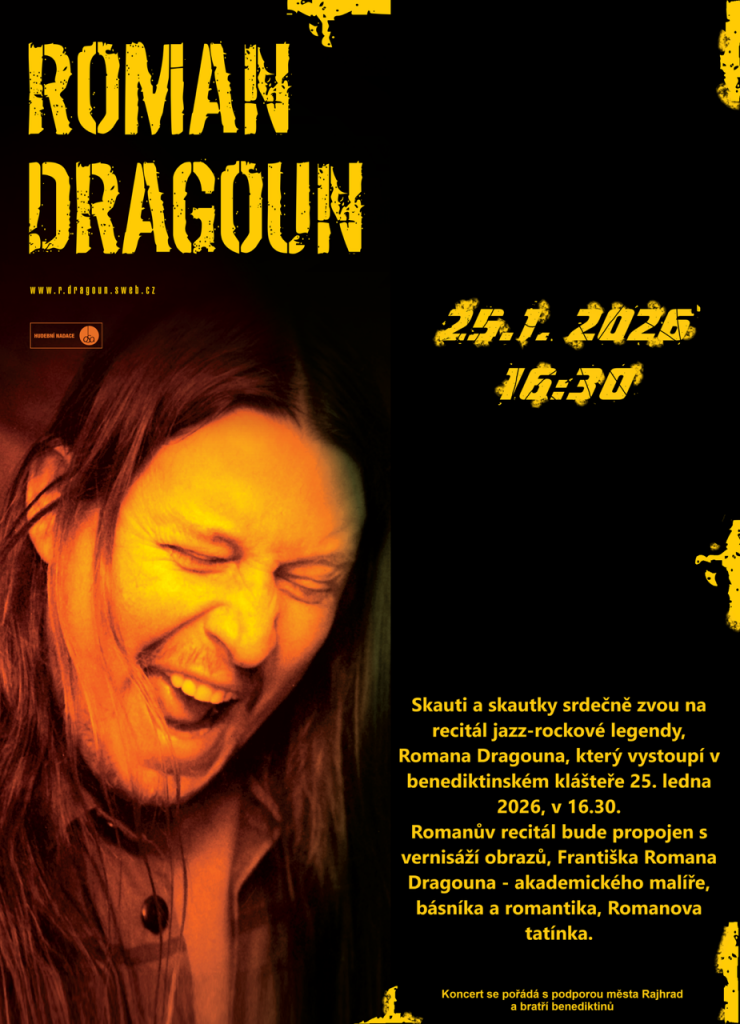 Pozvánka na recitál Romana Dragouna, v klášteře u Benediktínů