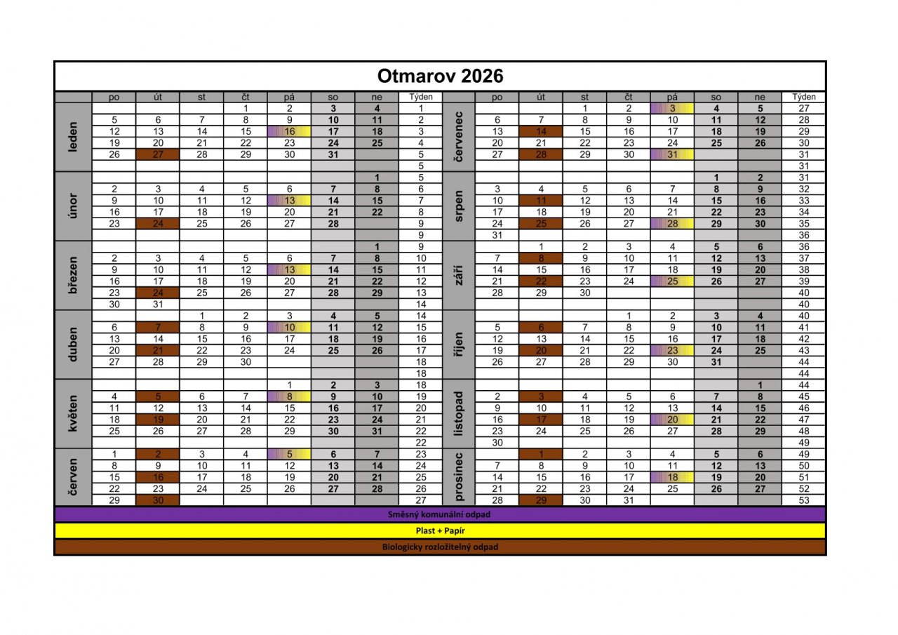 Kalendář svozů Otmarov 2026