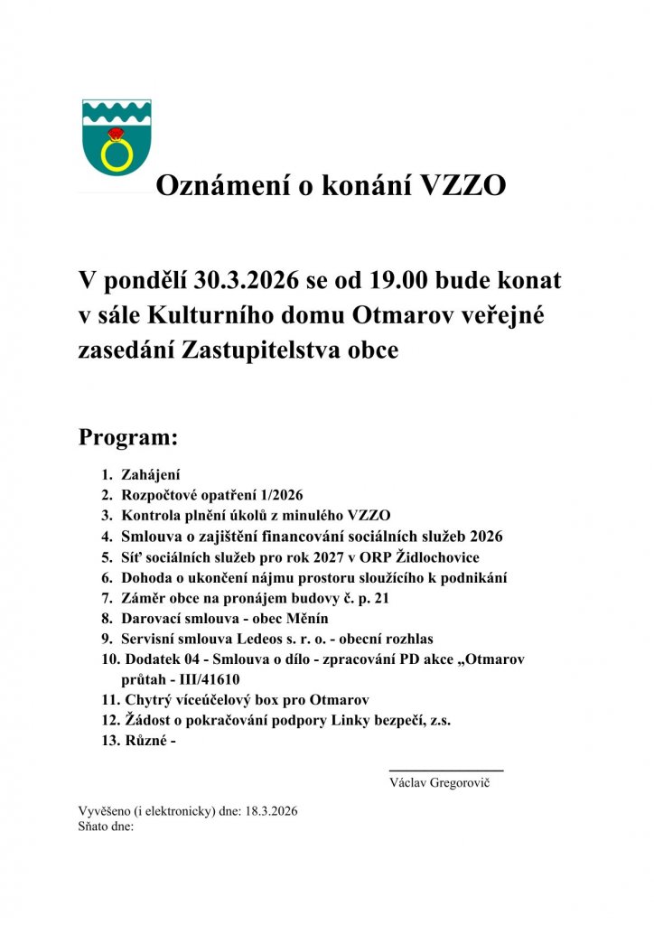 Oznámení VZZO 30.3.2026