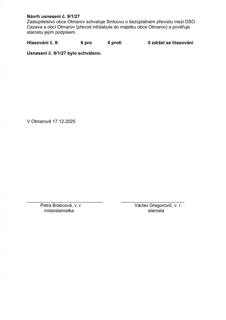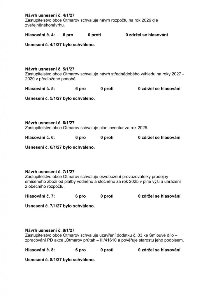 - Usnesení ze zasedání Zastupitelstva obce Otmarov - 16.12.2025