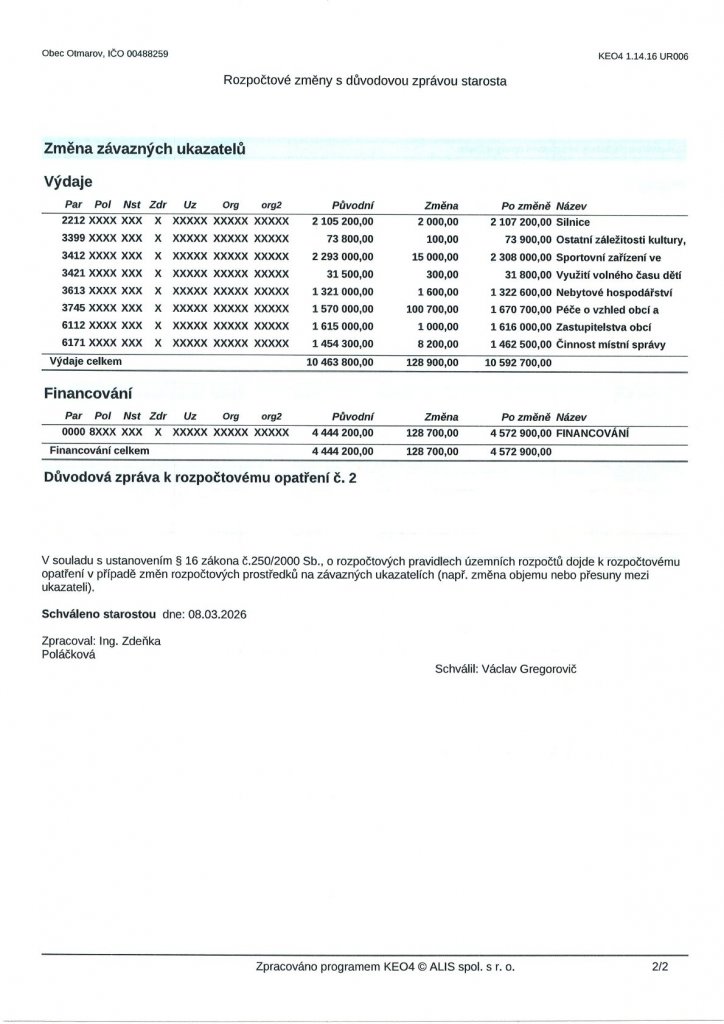 Usnesení ze zasedání Zastupitelstva obce Otmarov - 30.3.2026